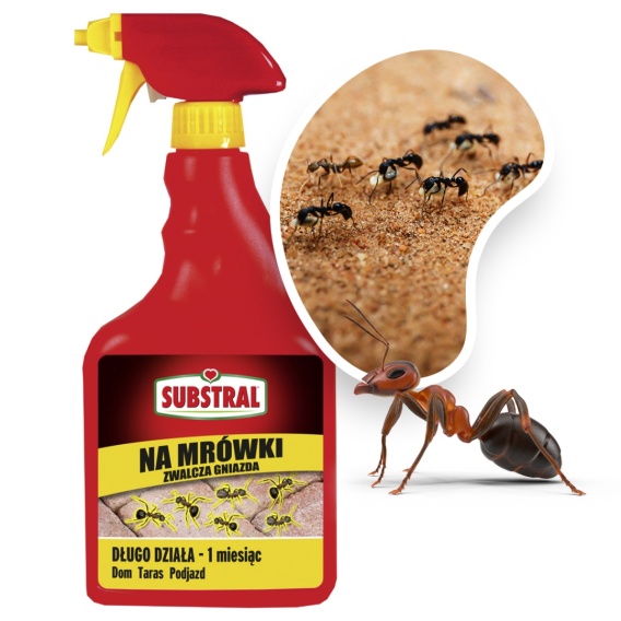 Substral na Mrówki. Niezwykle skuteczny preparat owadobójczy. Zwalcza mrówki, mrówki faraona i inne insekty nielatające. Likwiduje gniazda insektów. Natychmiastowy efekt. Tworzy trzymiesięczną ochronę w formie niewidocznej, bezbarwnej bariery dla insektów. Gotowy do użycia.